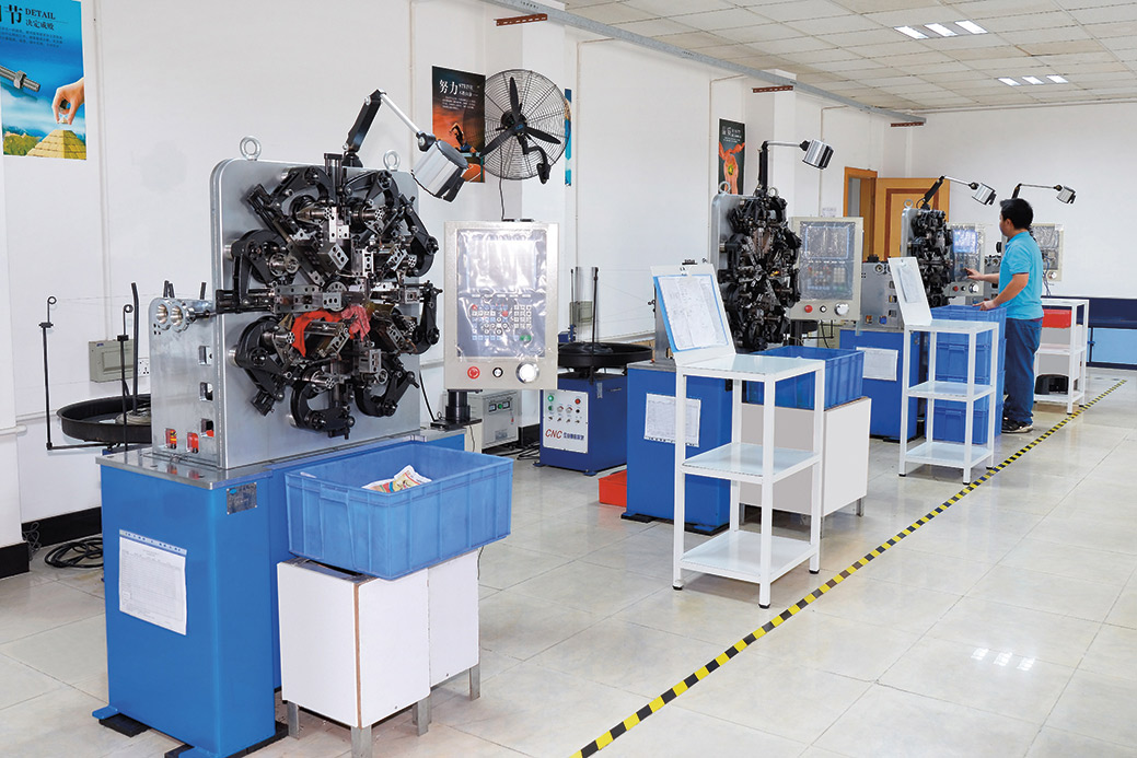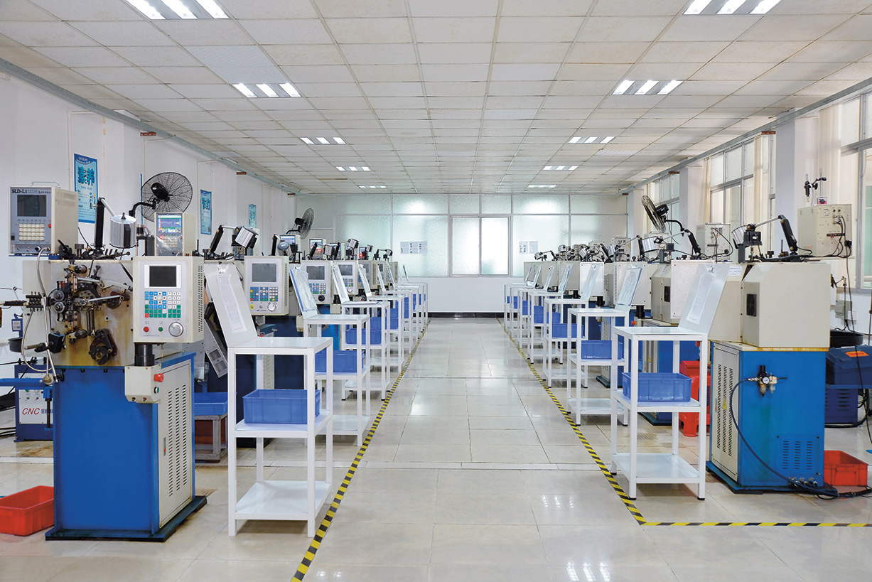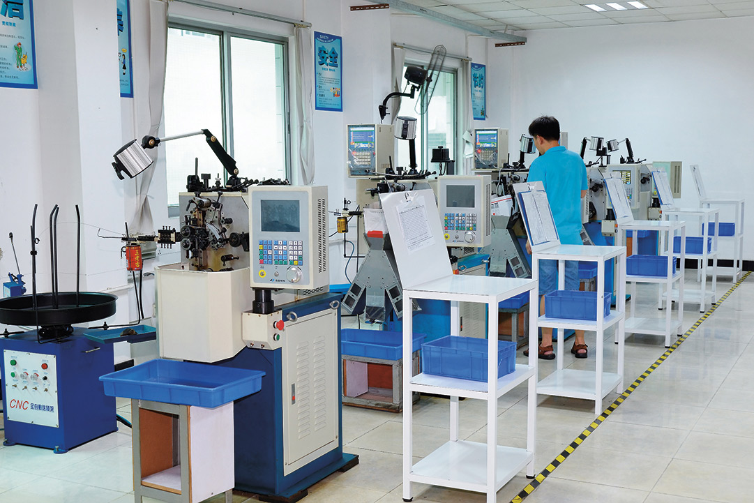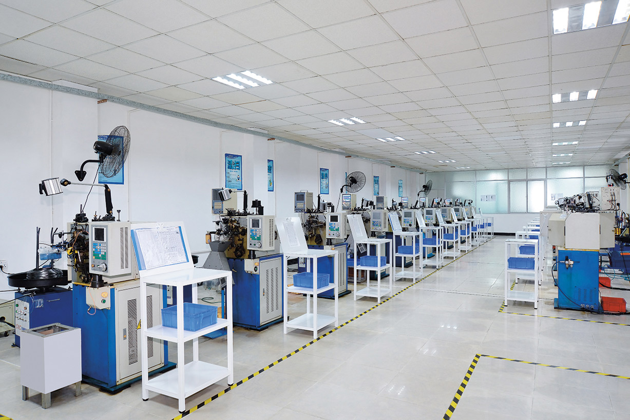 The spring division has 22sets 8HS computer compression spring machines,4 sets 502S computer spring machine,which make it easyto deal with avariety of precision mobile phone spring,precision probe spring, computer keyboard spring and varioustypes of torsion spring,tension spring and profiled spring, etc. Equipped with Taiwan Phonmarks spring length detector, the length of the spring can be automatically checked during the production process, and also classification and correction will be done as well, achieving 100% detection and screening in the production process. It helps to reduce the cost of product testing, and enable us to provide customers with perfect production quickly.